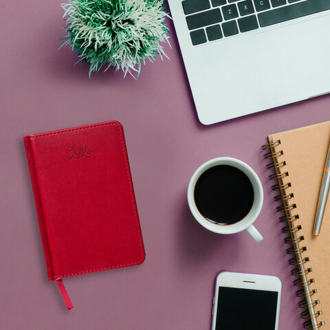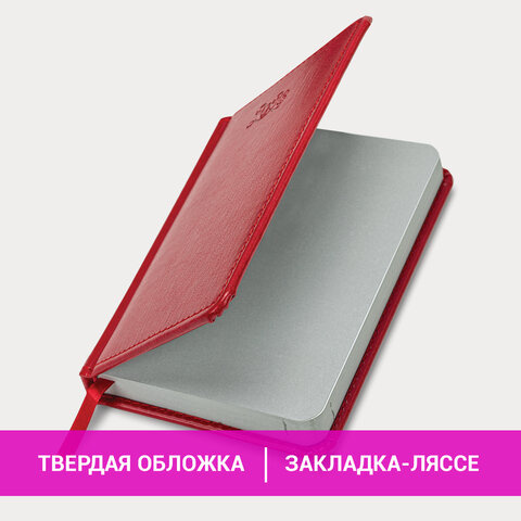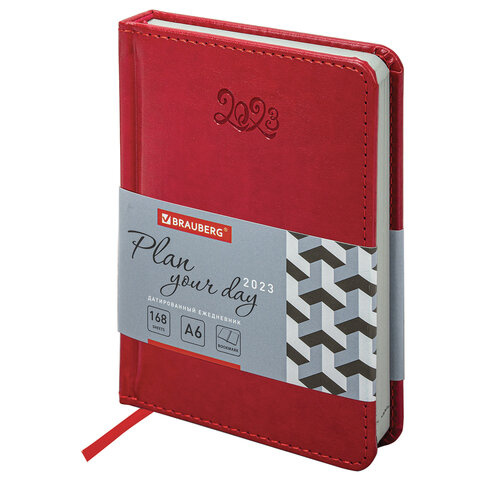 Ежедневник датированный 2023 МАЛЫЙ ФОРМАТ 100х150 мм А6, BRAUBERG 'Rainbow', под кожу, красный, 1139