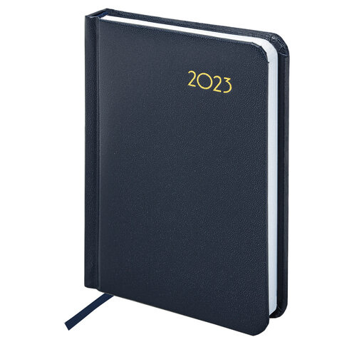 Ежедневник датированный 2023 МАЛЫЙ ФОРМАТ 100х150 мм А6, BRAUBERG 'Select', балакрон, синий, 113927