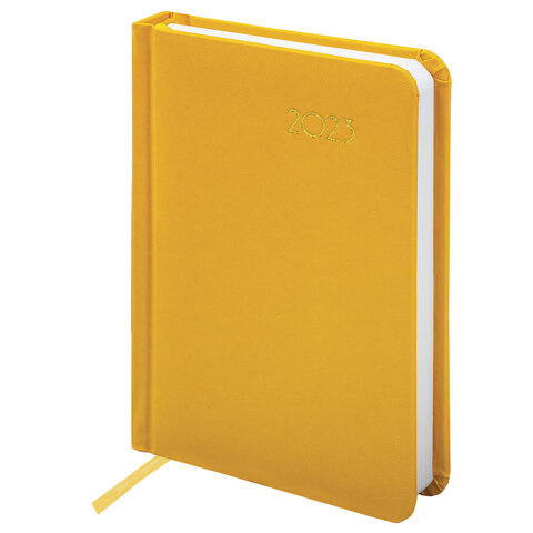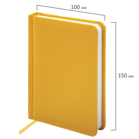 Ежедневник датированный 2023 МАЛЫЙ ФОРМАТ 100х150 мм А6, BRAUBERG 'Select', балакрон, желтый, 113929