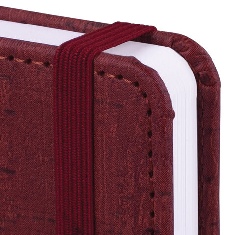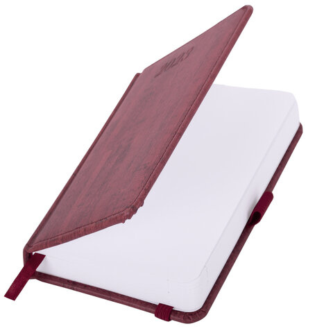 Внутренний блок включает 168 листов белой бумаги плотностью 70 г/м2. Каждая страничка имеет перфорированный угол. Благодаря малому формату А6 (100х150 мм) ежедневник удобно использовать как в офисе, так и на выездных деловых встречах. Твердая обложка стилизована под благородное дерево бордового цвета. Подходит для горячего тиснения. Снабжен резинкой-фиксатором, благодаря чему ежедневник не откроется в сумке или портфеле. Дополнением является закладка-ляссе, с помощью которой при необходимости можно быстро открыть ежедневник на нужной странице. Помимо прочего, ежедневник снабжен справочным материалом.
