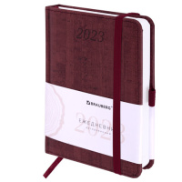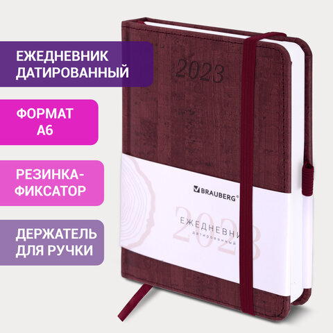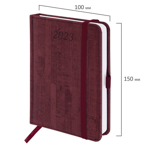 Ежедневник датированный 2023 МАЛЫЙ ФОРМАТ 100х150 мм А6, BRAUBERG 'Wood', под кожу, бордовый, 113933