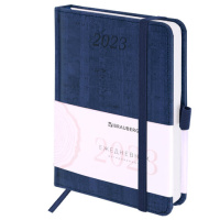 Ежедневник датированный 2023 МАЛЫЙ ФОРМАТ 100х150 мм А6, BRAUBERG 'Wood', под кожу, синий, 113932