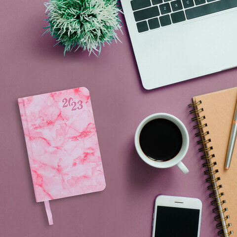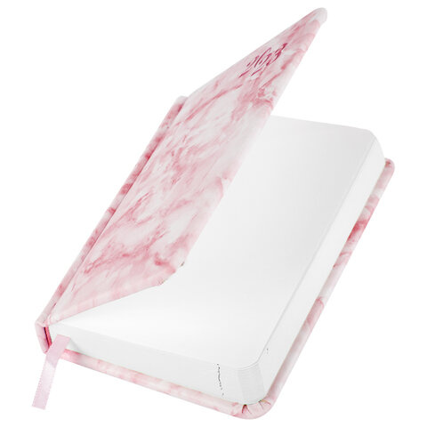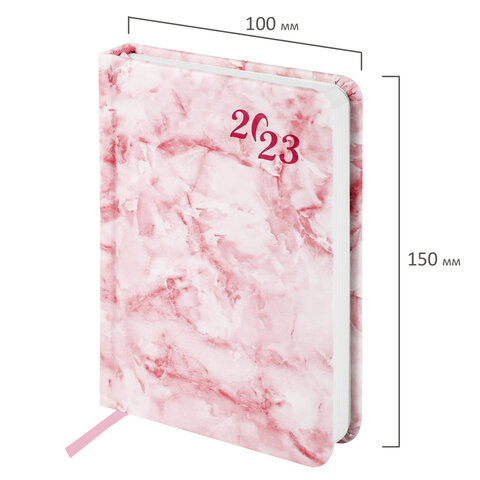 Ежедневник датированный 2023 МАЛЫЙ ФОРМАТ 100x150 мм А6, BRAUBERG 'Marble', под кожу, розовый, 11391