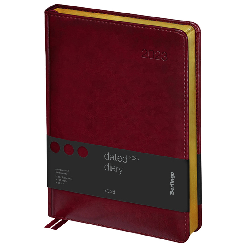 Ежедневник датированный 2023г., А4-(B5), 184л., кожзам, Berlingo 'xGold', зол. срез, бордовый