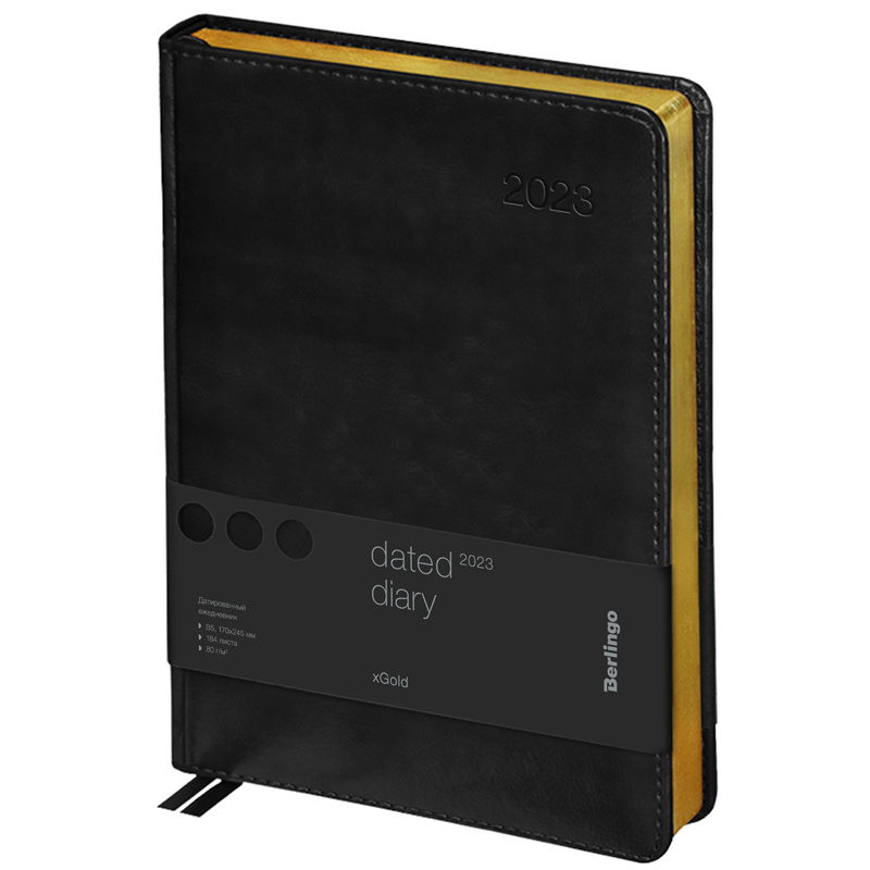 Ежедневник датированный 2023г., А4-(B5), 184л., кожзам, Berlingo 'xGold', зол. срез, черный
