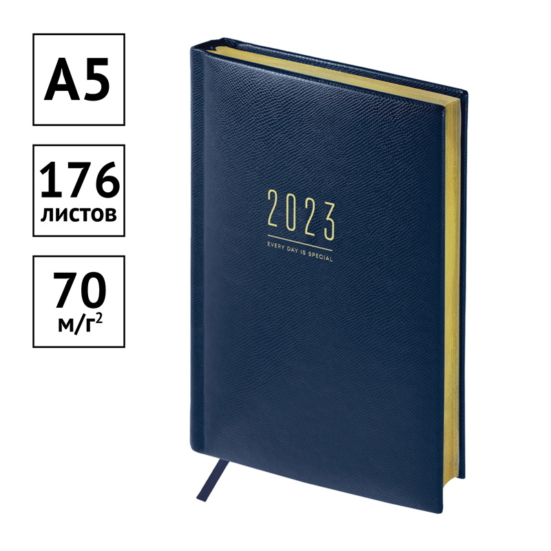 Ежедневник датированный 2023г., A5, 176л., кожзам, OfficeSpace 'Dallas', синий