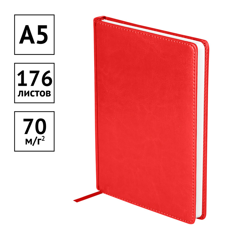 Ежедневник датированный 2023г., А5, 176л., кожзам, OfficeSpace 'Nebraska', красный