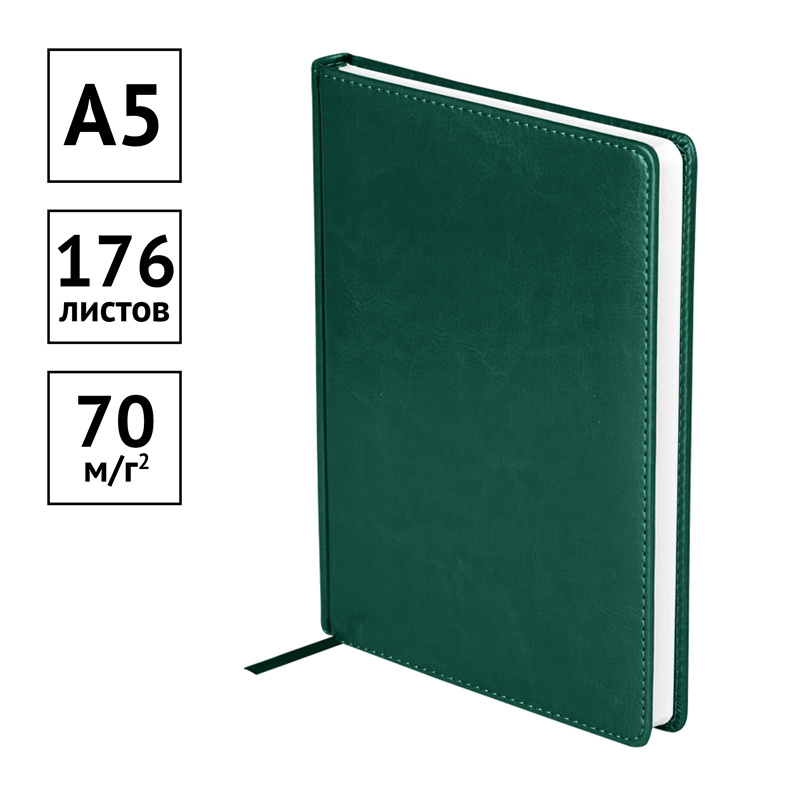 Ежедневник датированный 2023г., А5, 176л., кожзам, OfficeSpace 'Nebraska', зеленый