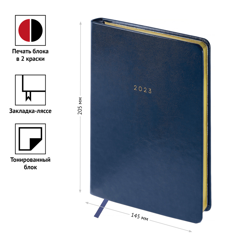 Ежедневник датированный 2023г., A5, 176л., кожзам, OfficeSpace 'Windsor ', синий
