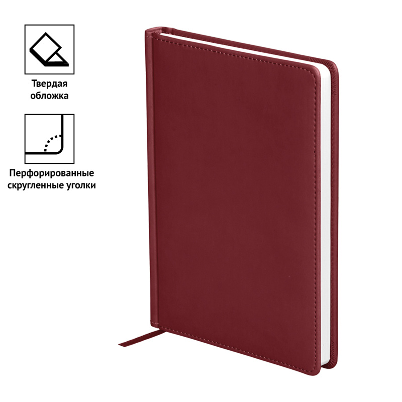 Ежедневник датированный формата А5 из коллекции «Winner». Обложка изготовлена из высококачественного кожзаменителя с гладкой мягкой матовой поверхностью, с поролоновой прослойкой, цвет обложки - бордовый. Подходит для всех видов полиграфического тиснения. Внутренний блок состоит из 176 листов офсетной бумаги плотностью 70 г/м2, печать блока в 2 краски, справочный материал. На форзацах географические карты России и Мира. Удобная закладка-ляссе и перфорированные уголки.