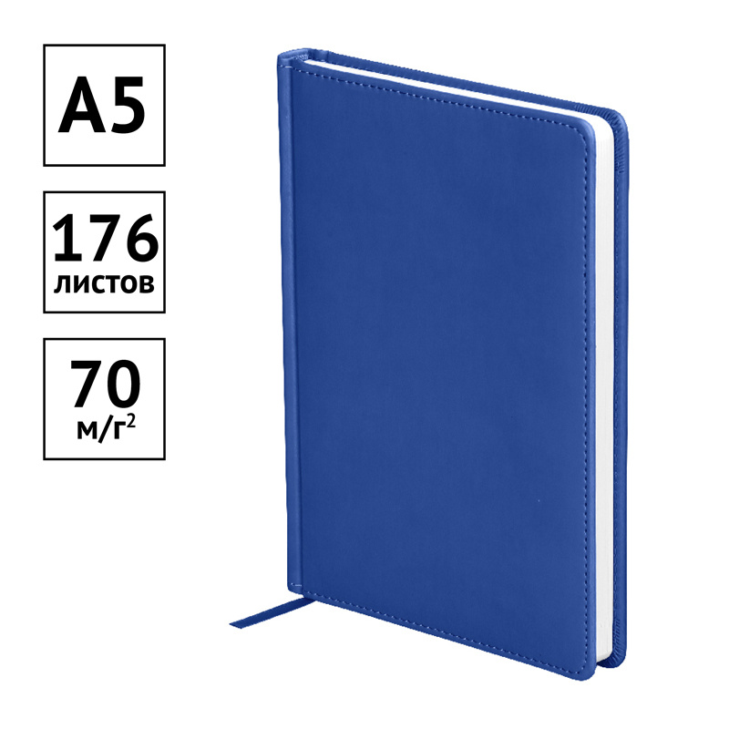 Ежедневник датированный формата А5 из коллекции «Winner». Обложка изготовлена из высококачественного кожзаменителя с гладкой мягкой матовой поверхностью, с поролоновой прослойкой, цвет обложки - синий. Подходит для всех видов полиграфического тиснения. Внутренний блок состоит из 176 листов офсетной бумаги плотностью 70 г/м2, печать блока в 2 краски, справочный материал. На форзацах географические карты России и Мира. Удобная закладка-ляссе и перфорированные уголки.