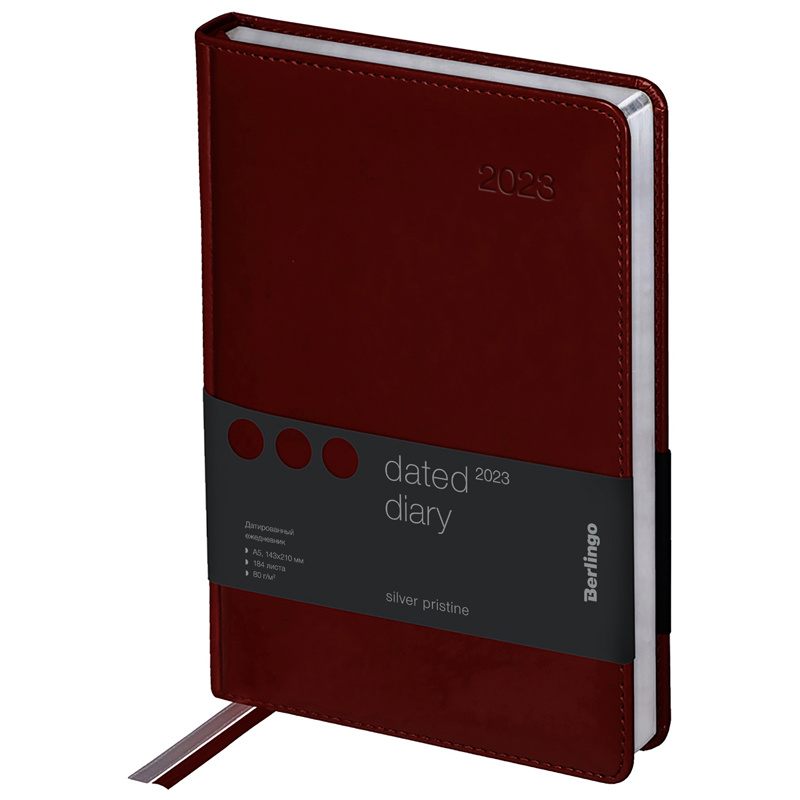 Ежедневники Berlingo Silver Pristine изготовлены из глянцевого кожзаменителя, имитирующего лакированную кожу первоклассной выделки. Ежедневник датированный формата А5 (150*215 мм) с обложкой с поролоновой прослойкой и прострочкой по периметру. Серебряный фольгированный срез блока. 184 листа. Цвет обложки - коричневый. Высококачественная кремовая бумага повышенной плотности 80 г/м2, пантонная печать блока в 2 краски, справочный материал, географические карты на форзацах. Перфорированные уголки блока. 2 закладки-ляссе. Отрывные заметки и бланки-извещения о ДТП. В подарок 3 комплекта стикеров.