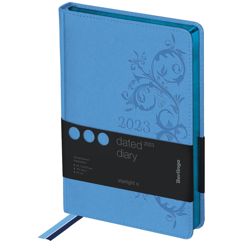 Ежедневники Berlingo Starlight S изготовлены из высококачественного кожзаменителя с мягкой гладкой матовой поверхностью. Ежедневник датированный формата А5 (150*215 мм) с обложкой с поролоновой прослойкой и прострочкой по периметру. Элегантное имиджевое тиснение. Синий фольгированный срез блока. 184 листа. Цвет обложки - голубой. Высококачественная кремовая бумага повышенной плотности 80 г/м2, пантонная печать блока в 2 краски, справочный материал, географические карты на форзацах. Перфорированные уголки блока. 2 закладки-ляссе. Отрывные заметки и бланки-извещения о ДТП. В подарок 3 комплекта стикеров.
