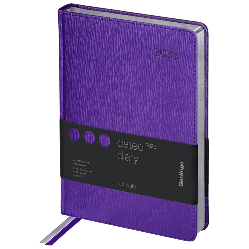 Ежедневник датированный 2023г., А5, 184л., кожзам, Berlingo 'Starlight', сер. срез, фиолетовый