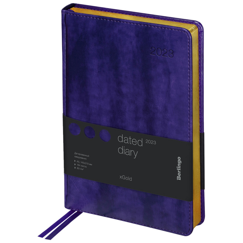Ежедневник датированный 2023г., А5, 184л., кожзам, Berlingo 'xGold', зол. срез, фиолетовый