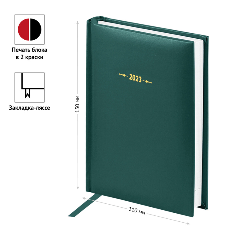 Ежедневник датированный 2023г., А6, 176л., балакрон, OfficeSpace 'Ariane', зеленый