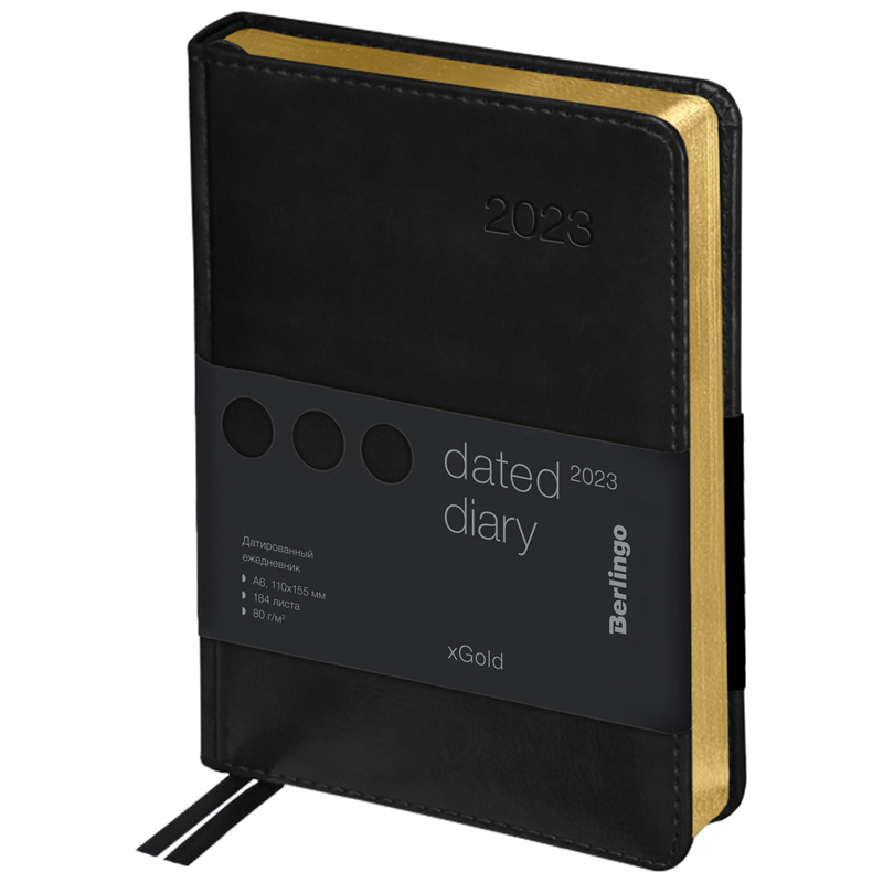 Ежедневник датированный 2023г., А6, 184л., кожзам, Berlingo 'xGold', зол. срез, черный
