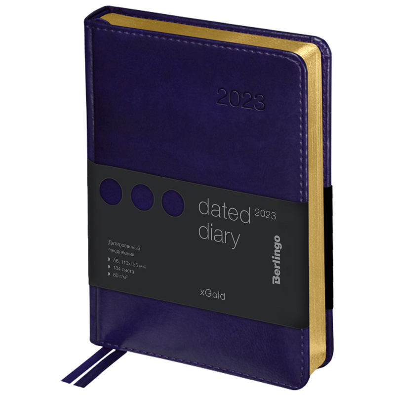 Ежедневники Berlingo xGold изготовлены из глянцевого рельефного кожзаменителя, имитирующего кожу первоклассной выделки. Ежедневник датированный формата A6 (115*160 мм) с обложкой с поролоновой прослойкой. Золотой фольгированный срез блока. 184 листа. Цвет обложки - фиолетовый. Высококачественная кремовая бумага повышенной плотности 80 г/м2, пантонная печать блока в 2 краски, справочный материал, географические карты на форзацах. Перфорированные уголки блока. 2 закладки-ляссе. Отрывные заметки. В подарок 3 комплекта стикеров.