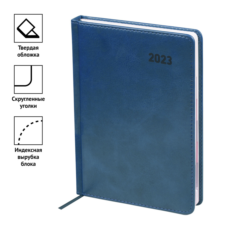 Ежедневник датированный 2023г. с вырубкой, A5, 176л., кожзам, OfficeSpace 'Vesper Index', синий