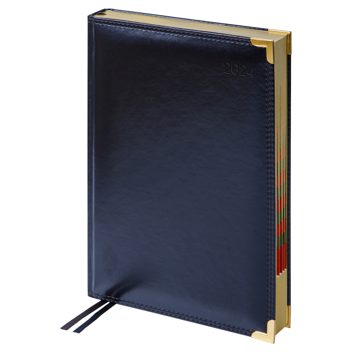 Ежедневник датированный 2024г., А4-(B5), 184л., Delucci, Гладкая кожа, зол. срез, черный