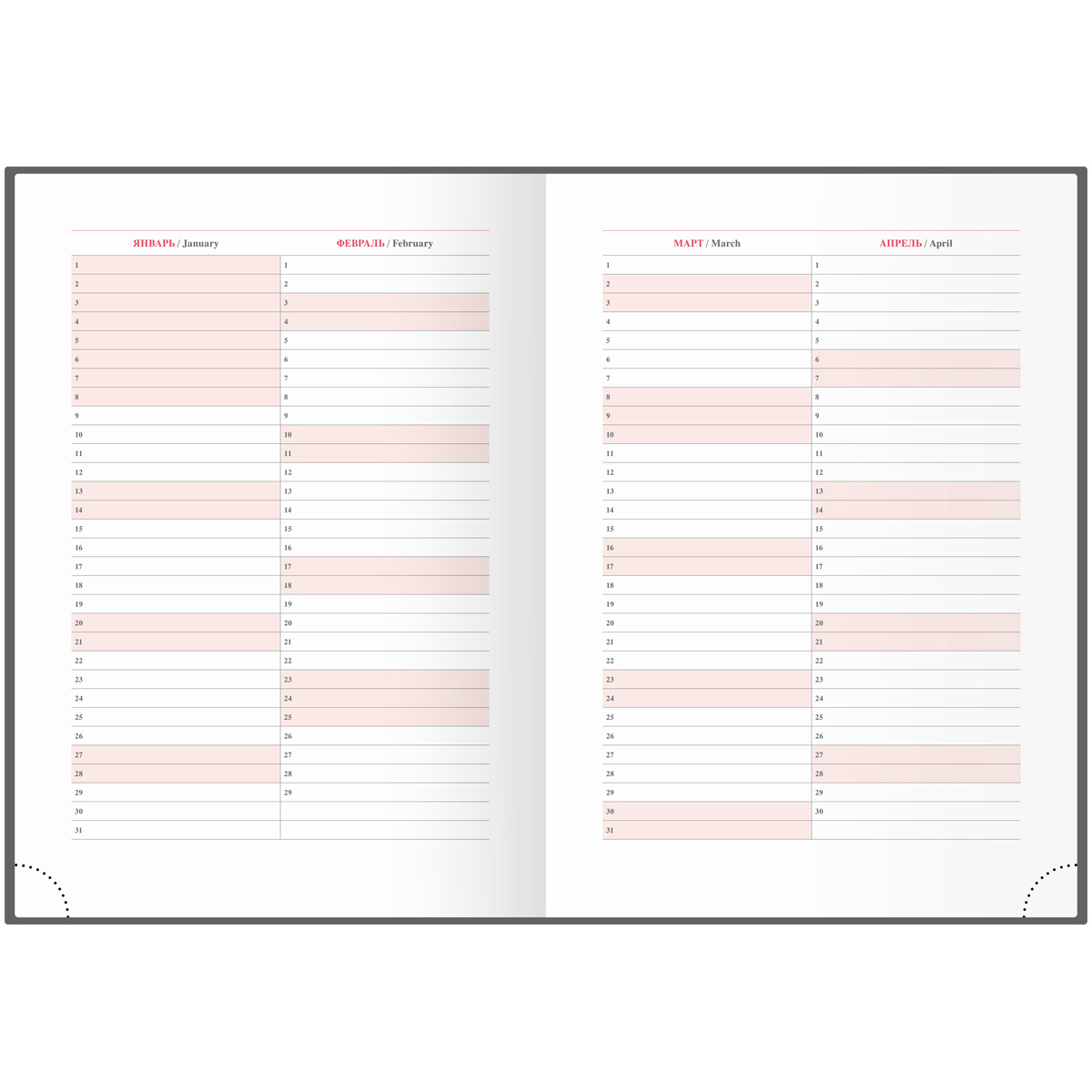 Ежедневник датированный формата А5 из коллекции «Ariane». Обложка изготовлена из высококачественного переплетного материала с поролоновой прослойкой, цвет обложки - сиреневый. Внутренний блок состоит из 176 листов офсетной бумаги плотностью 70 г/м2, печать блока в 2 краски, справочный материал. Удобная закладка-ляссе и перфорированные уголки.