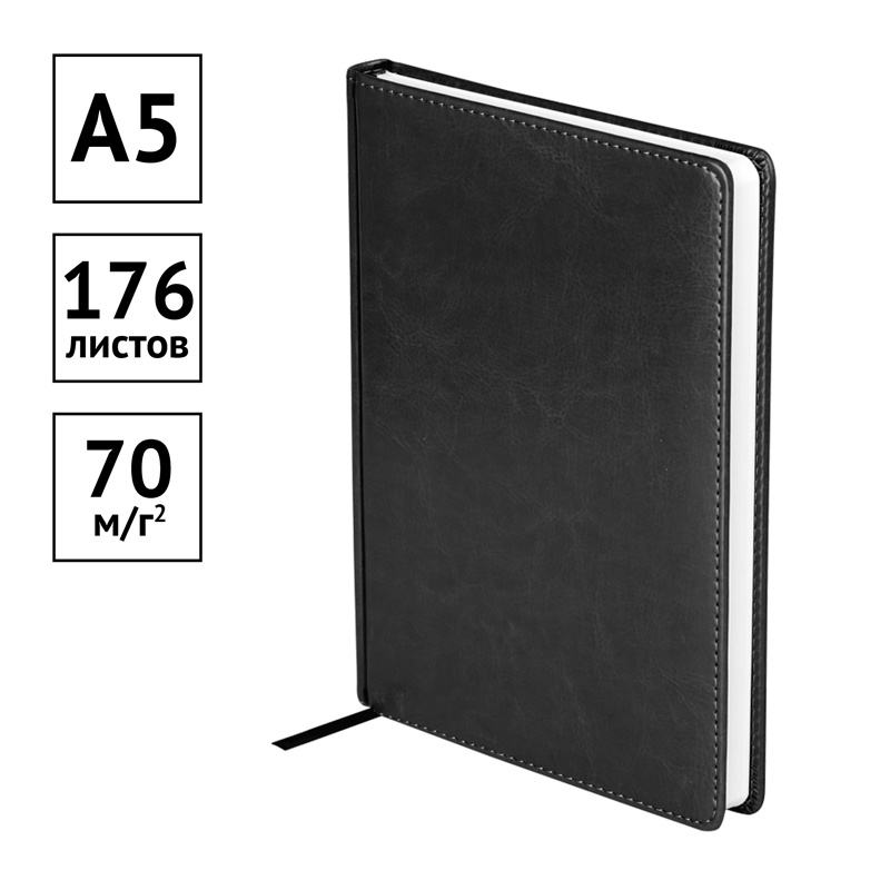 Ежедневник датированный 2024г., A5, 176л., кожзам, OfficeSpace 'Nebraska', черный