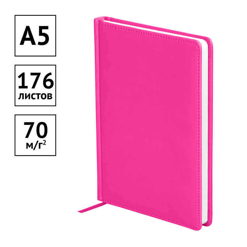 Ежедневник датированный формата А5 из коллекции «Winner». Обложка изготовлена из высококачественного кожзаменителя с гладкой мягкой матовой поверхностью, с поролоновой прослойкой, цвет обложки - фуксия. Подходит для всех видов полиграфического тиснения. Внутренний блок состоит из 176 листов офсетной бумаги плотностью 70 г/м2, печать блока в 2 краски, справочный материал. Удобная закладка-ляссе и перфорированные уголки.