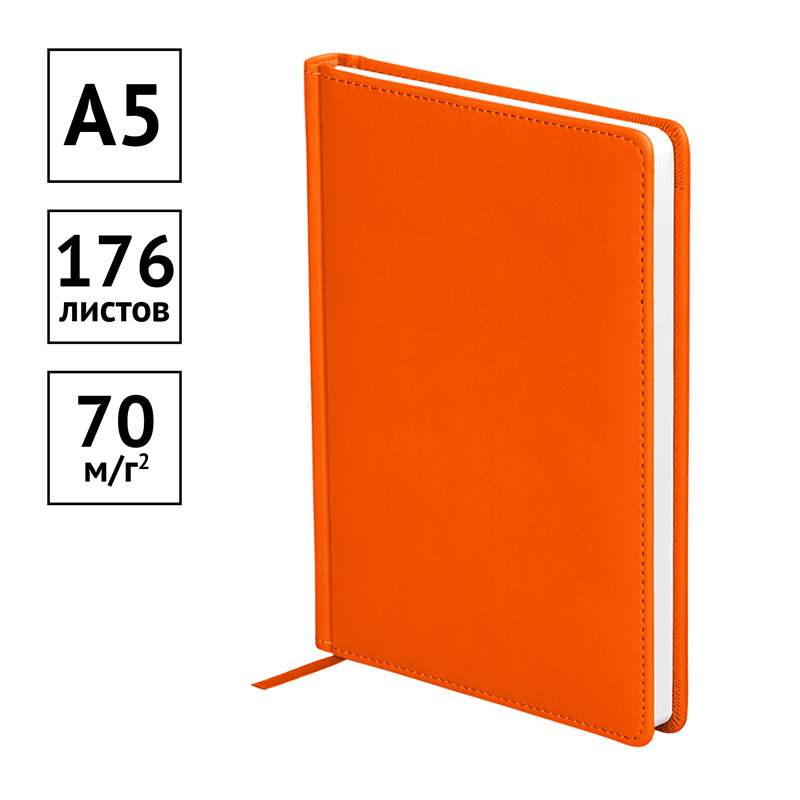 Ежедневник датированный формата А5 из коллекции «Winner». Обложка изготовлена из высококачественного кожзаменителя с гладкой мягкой матовой поверхностью, с поролоновой прослойкой, цвет обложки - оранжевый. Подходит для всех видов полиграфического тиснения. Внутренний блок состоит из 176 листов офсетной бумаги плотностью 70 г/м2, печать блока в 2 краски, справочный материал. Удобная закладка-ляссе и перфорированные уголки.