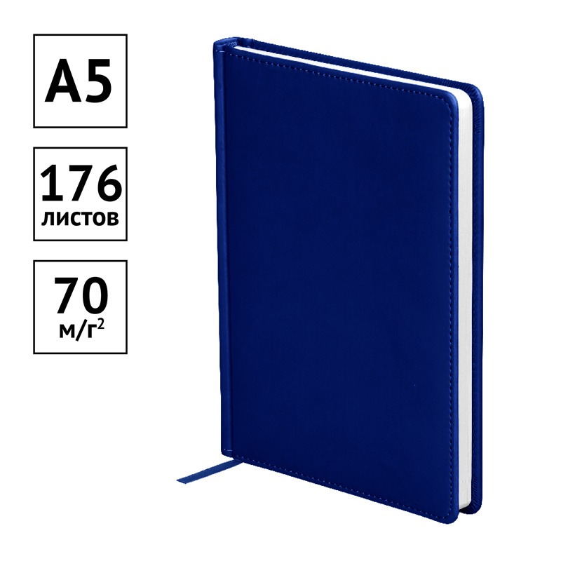 Ежедневник датированный формата А5 из коллекции «Winner». Обложка изготовлена из высококачественного кожзаменителя с гладкой мягкой матовой поверхностью, с поролоновой прослойкой, цвет обложки - синий. Подходит для всех видов полиграфического тиснения. Внутренний блок состоит из 176 листов офсетной бумаги плотностью 70 г/м2, печать блока в 2 краски, справочный материал. Удобная закладка-ляссе и перфорированные уголки.