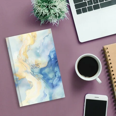Ежедневник датированный 2025 145х215 мм, А5, STAFF, ламинированная обложка, 'Blue Marble', 116021