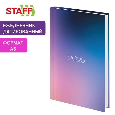 Ежедневник датированный 2025 145х215 мм, А5, STAFF, ламинированная обложка, 'Градиент', 116025