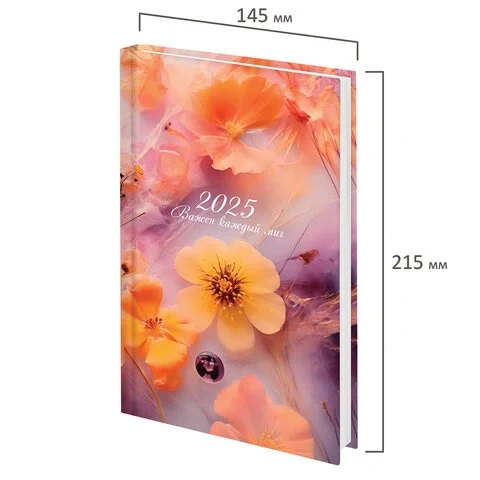 Ежедневник датированный 2025 145х215 мм, А5, STAFF, ламинированная обложка, 'Ice flowers', 116030