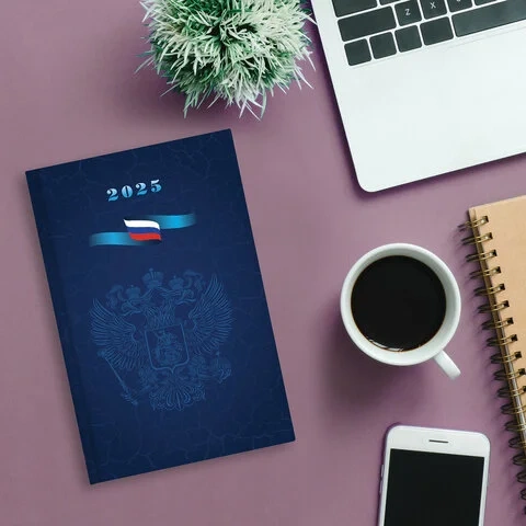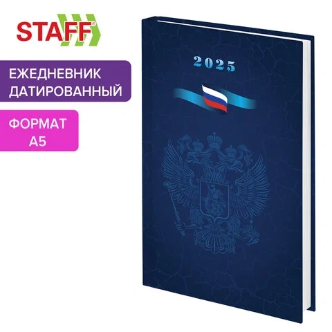 Ежедневник датированный 2025 145х215 мм, А5, STAFF, ламинированная обложка, 'Символика РФ', 116019