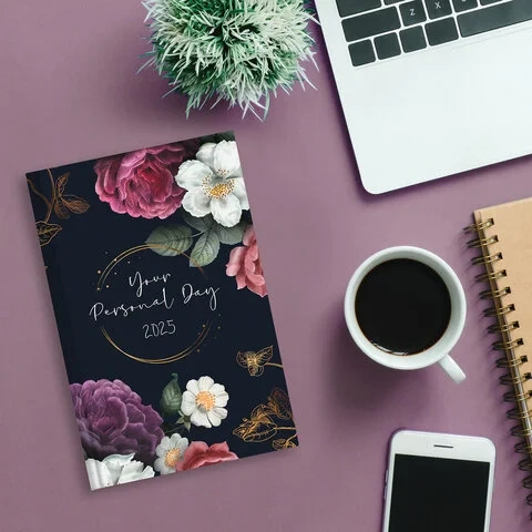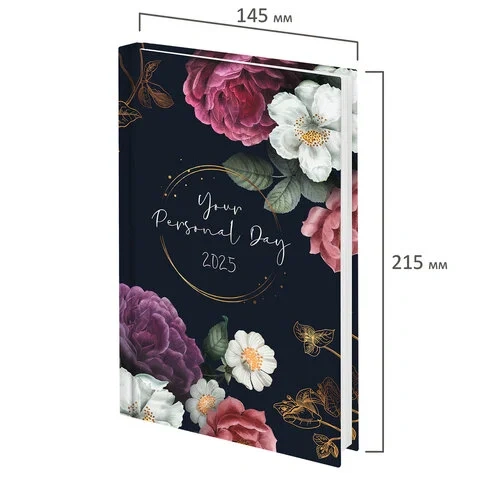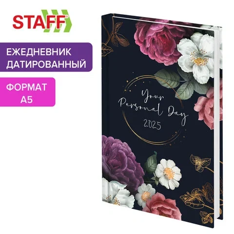 Ежедневник датированный 2025 145х215 мм, А5, STAFF, ламинированная обложка, 'Цветы', 116024