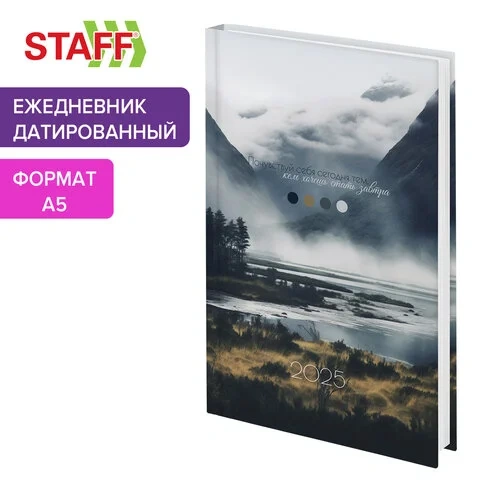 Ежедневник датированный 2025 145х215 мм, А5, STAFF, ламинированная обложка, 'Туман', 116018