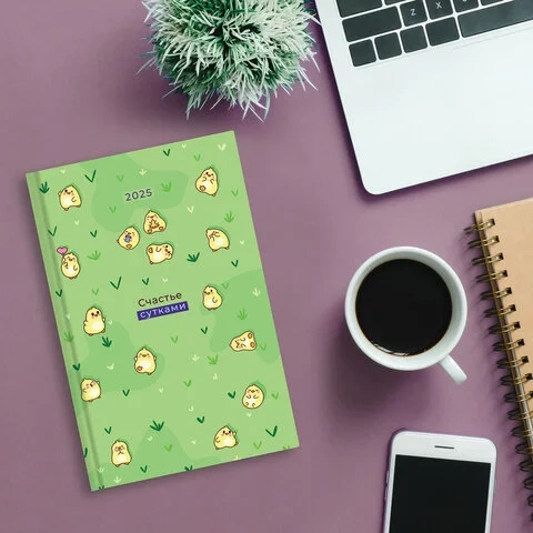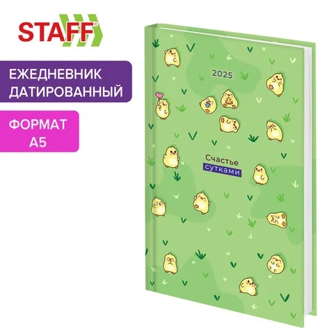 Ежедневник датированный 2025 145х215 мм, А5, STAFF, ламинированная обложка, 'Утки', 116033