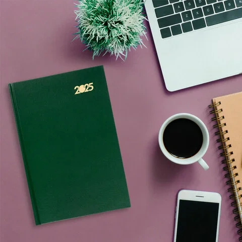Ежедневник датированный 2025 145х215 мм, А5, STAFF, обложка бумвинил, зеленый, 116016