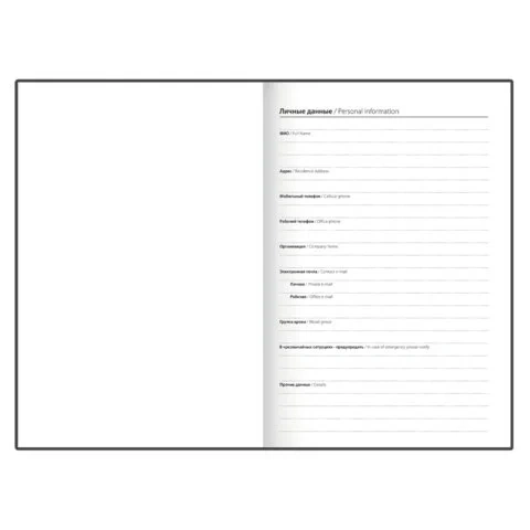 Ежедневник снабжен обширным справочным материалом. В конце имеется 1 страница для записей и заметок.