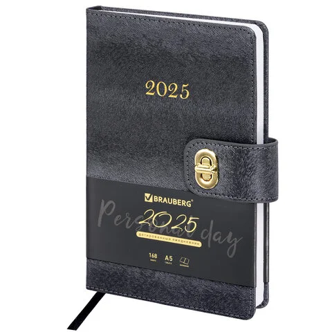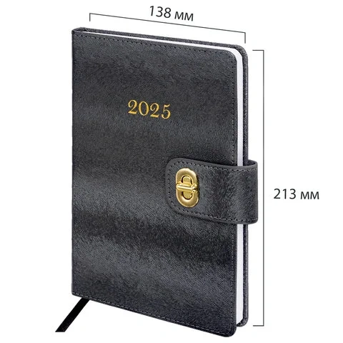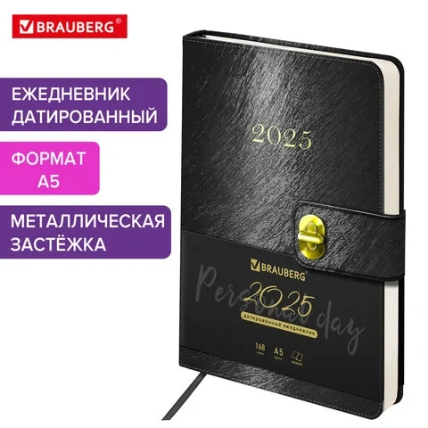 Ежедневник датированный 2025, А5, 138х213 мм, BRAUBERG 'Elegant', под кожу, застежка, черный, 115938