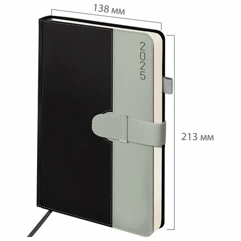 Внутренний блок включает 168 листов белой бумаги плотностью 70 г/м2. Каждая страничка имеет перфорированный угол. Благодаря стандартному формату А5 (138x213 мм) ежедневник удобно использовать как в офисе, так и на выездных деловых встречах.