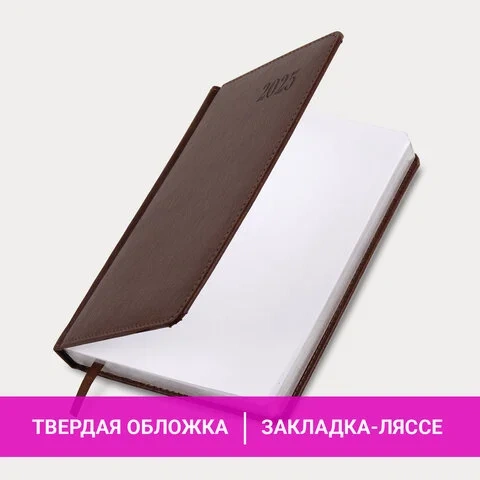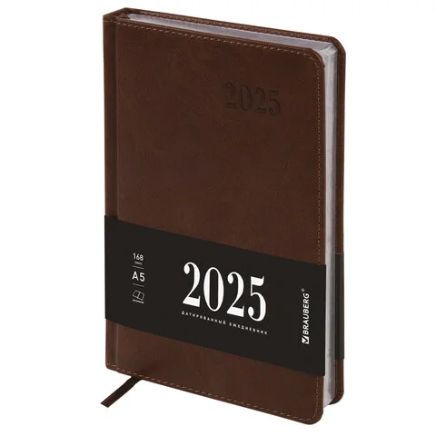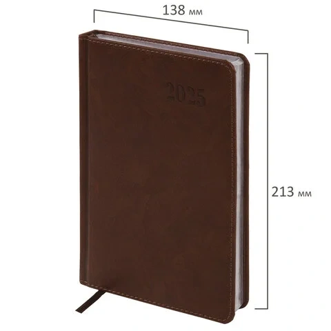Ежедневник датированный 2025, А5, 138х213 мм, BRAUBERG 'Impression', под кожу, коричневый, 115921