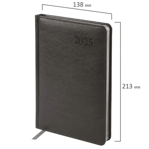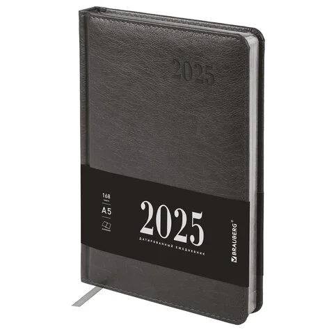 Ежедневник датированный 2025, А5, 138х213 мм, BRAUBERG 'Impression', под кожу, серый, 115923