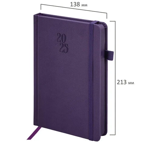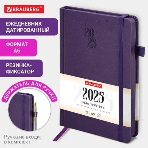 Ежедневник датированный 2025, А5, 138х213 мм, BRAUBERG 'Plain', под кожу, резинка, держатель для руч
