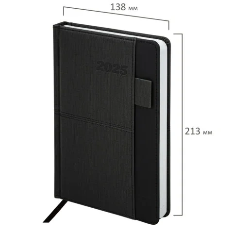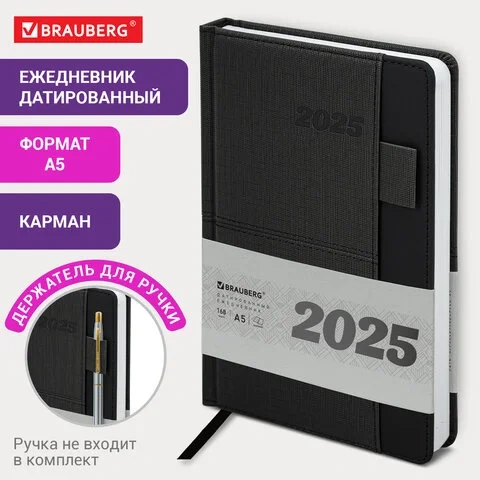 Ежедневник датированный 2025, А5, 138х213 мм, BRAUBERG 'Pocket', под кожу, карман, держатель для руч