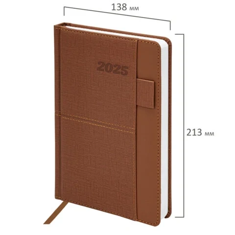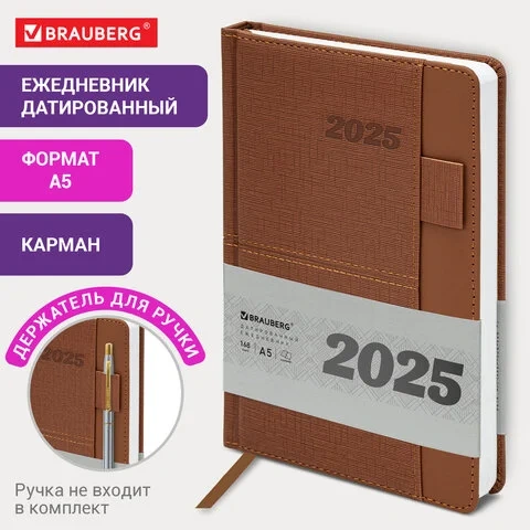 Ежедневник датированный 2025, А5, 138х213 мм, BRAUBERG 'Pocket', под кожу, карман, держатель для руч