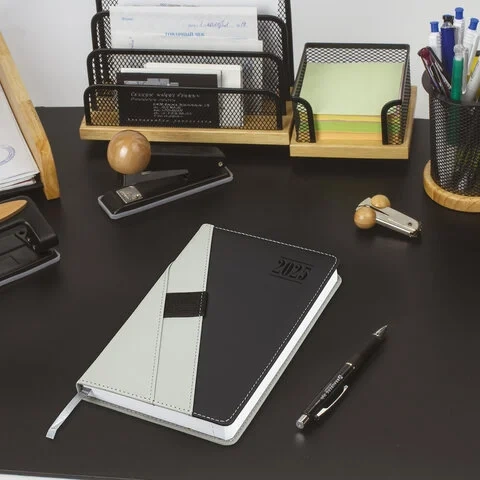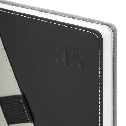 Ежедневник датированный 2025 А5 138х213 мм BRAUBERG 'Swirl', под кожу, держатель для ручки, серый, 1
