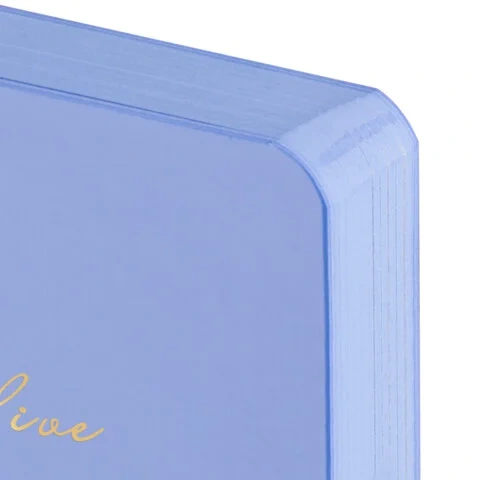 Мягкая интегральная обложка стилизована под гладкую кожу пастельного синего цвета. Материал обложки подходит для горячего тиснения. Цветной срез придает ежедневнику особый шарм. Дополнением является закладка-ляссе, с помощью которой при необходимости можно быстро открыть ежедневник на нужной странице. Ежедневник снабжен обширным справочным материалом. В конце имеются 4 страницы для записей и заметок.