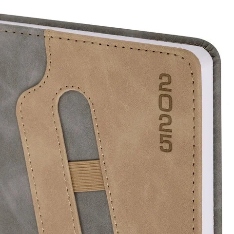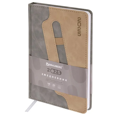 Ежедневник датированный 2025, А5, 138x213 мм, BRAUBERG 'Assistant', под кожу, держатель, серый, 1158