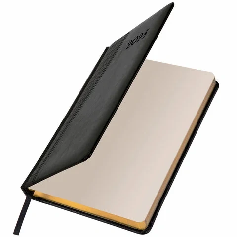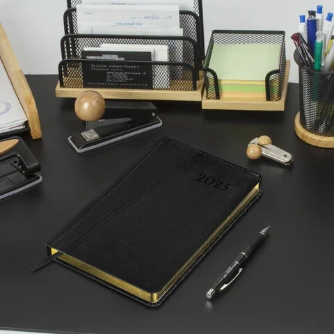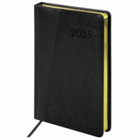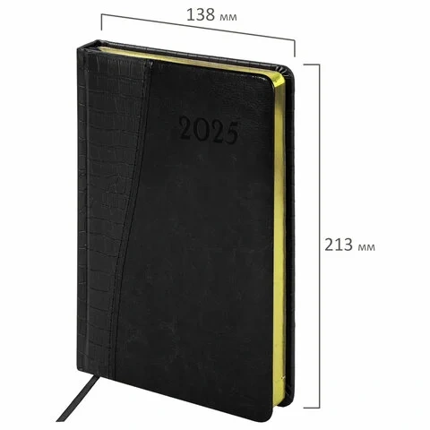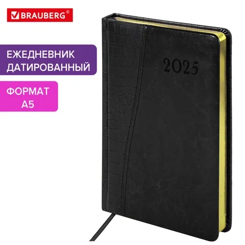 Ежедневник датированный 2025, А5, 138x213 мм, BRAUBERG 'Cayman', под кожу, черный, 115772