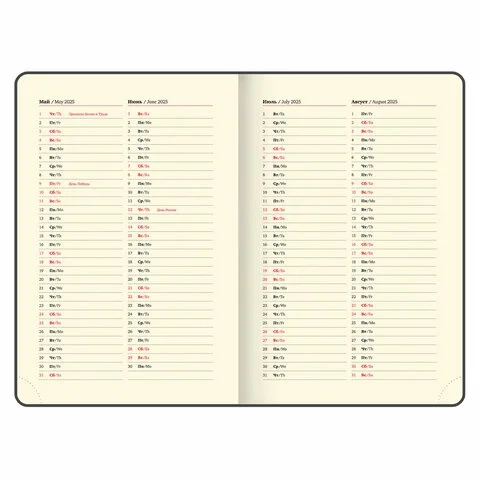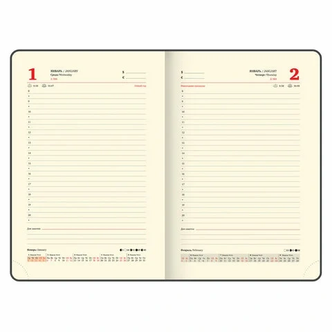 Ежедневник снабжен обширным справочным материалом. В конце имеются 4 страницы для записей и заметок.